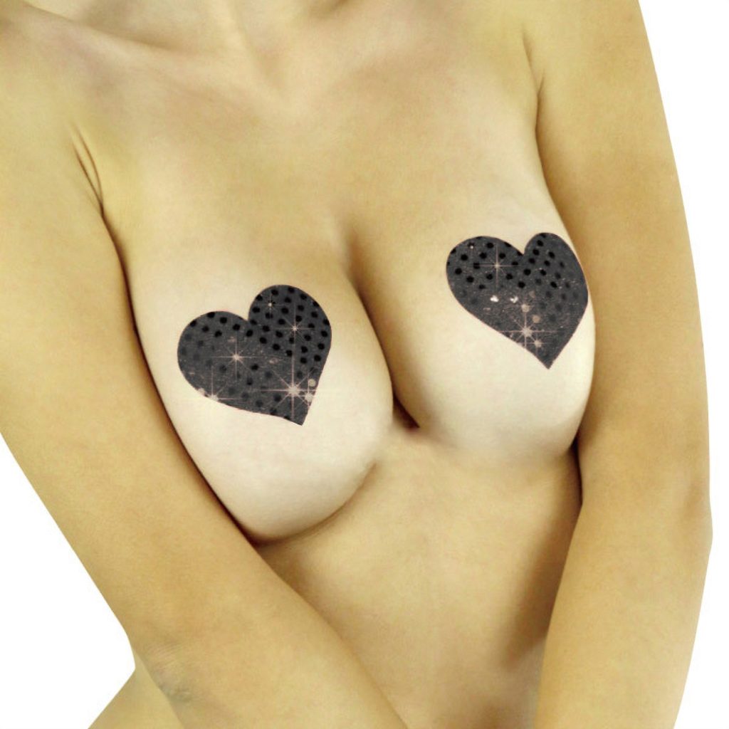 ピタッと貼るだけの簡単仕様♪バストトップに貼るだけで、セクシーな大人の雰囲気を醸し出す下着感覚のニップルジュエリー「ニップルシール ドットハート 黒」。 同色ペア1組セット、1回使い切りシールタイプのボディアクセ。 可愛らしいドット柄のハート型デザインはショータイムやナイトパーティーにも最適!透け・突起防止・擦れ対策にもお勧めです。