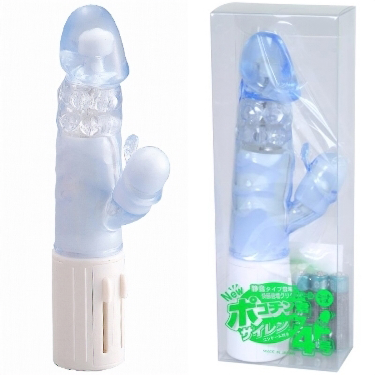 大人気の名作バイブ「ポコチン君シリーズ」に新作登場!スイング×振動×クリバイブに加え、ゴリゴリと刺激するパールを追加。充実した機能で外から中から責め立てる!また、プルプルとした柔らか素材と太目のカリによるしっかりとした挿入感も魅力の1つ。初めてのバイブはちゃんとしたものを選びたいという方に最適な逸品です♪電池式(単4電池を3本使用)