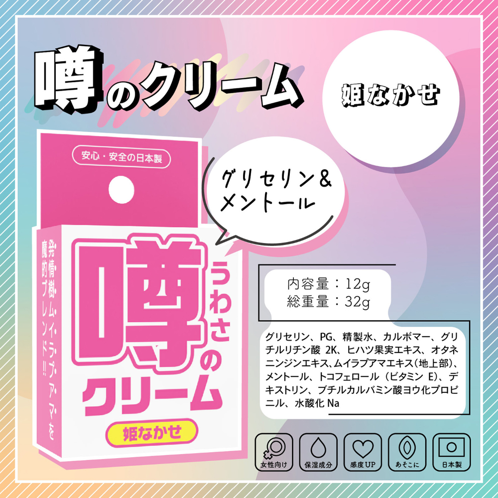 <成分>グリセリン、PG、精製水、カルボマー、グリチルリチン酸2K、ヒハツ果実エキス、オタネニンジンエキス、ムイラプアマエキス(地上部)、メントール、トコフェロール(ビタミンE)、デキストリン、ブチルカルバミン酸ヨウ化プロピニル、水酸化Na