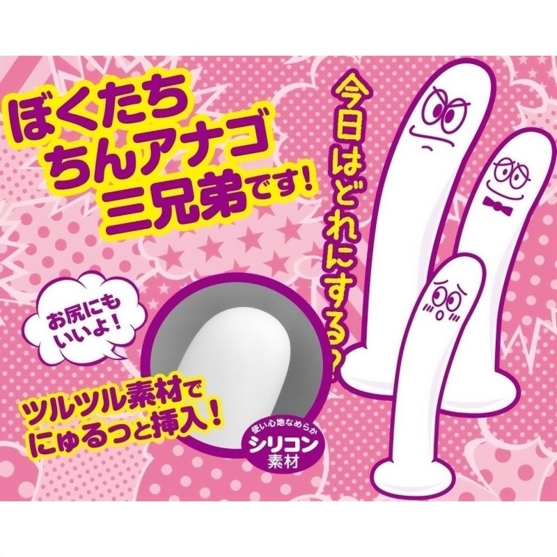 にゅるっと入れやすくて気持ちいい!シリコン素材のディルド三兄弟「ちんアナゴ」シリーズの三男バージョン。●本体全長13cm・太さ2.5cm●シリーズ中一番小さい三男●肌触りの良いシリコン素材●つるんと滑らかなフォルム●強力吸盤でピッタリ固定。凹凸のないシンプルフォルムでアソコやアナルに無理なく挿入♪細身フォルムで初心者の方にもお勧めな「ちんアナゴ」三兄弟の三男ディルド。強力吸盤付きなので激しいアクションにも対応できます。