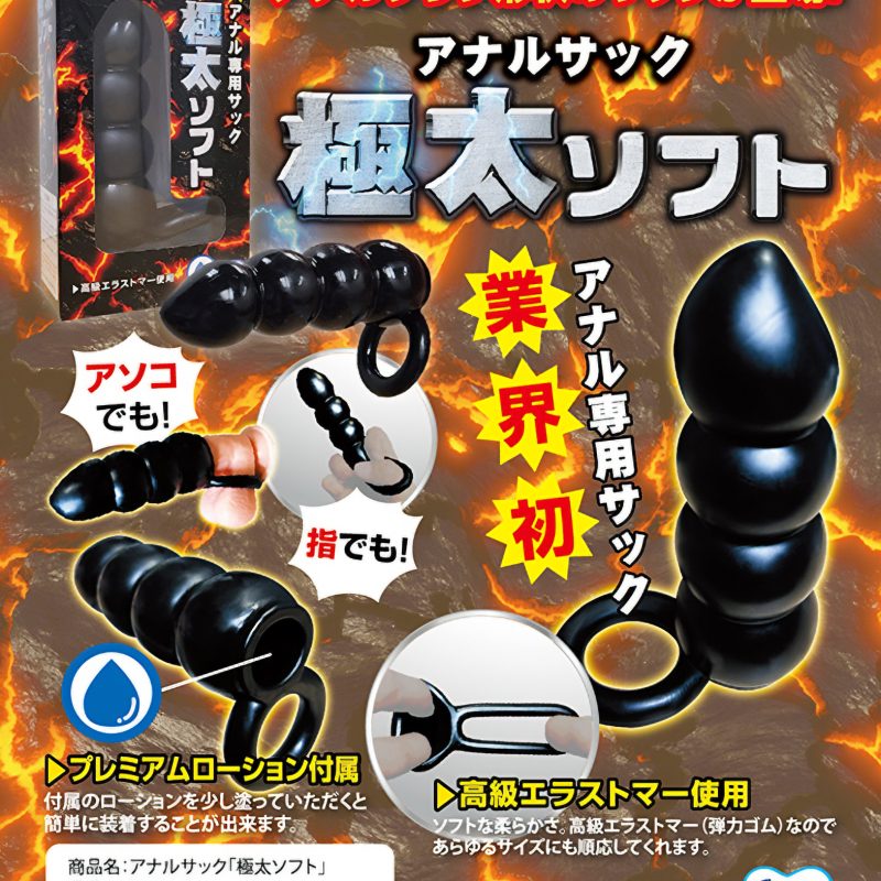 業界初!アナル専用のサックが登場!それがアナルサック「極太ソフト」です!アナル専用サックとして、アナルプラグのような形状!見た目にも強そうな作りですが、本体はやんわりソフト。高級エラストマーを使用しておりますので、安心して装着して頂ける作りとなっております!サックは装着がしにくいので、プレミアムローションが付属しております。これを少し塗って頂くと簡単装着可能です!見た目にも格好いいアナル専用サック「極太ソフト」!怒張したアソコに被せたら激しいプレイの開始ですよ!