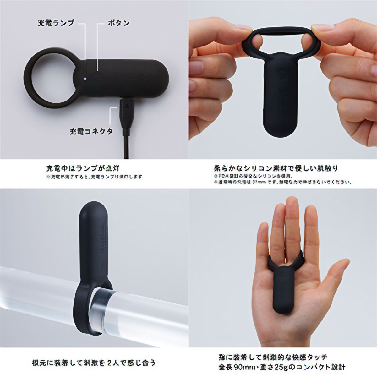 あのTENGAブランドから、より深く愛し合いたいカップルの為の充電式リングローター「TENGA SVR」がデビュー。●カップル専用サポートグッズ●フィット感抜群の安心シリコン素材●繰り返し使える充電式のパワフル振動●振動強弱は5段階、振動パターンは2種類●丸洗いできる防水仕様(水深50cmまで)●USBによるフル充電60分で最大約60分稼動●ウォーターベースのローションのみ併用可。シリコンリングを男性自身の根元に装着してスイッチオン!指に装着すればスマートフォルムの愛撫用ローターにも変身。ダイレクトな振動でいつも以上に濃厚なラブタイムをお楽しみ頂けます。※ACアダプタは付属しません。充電には別途パソコン、もしくはUSB端子のついたACアダプタが必要です