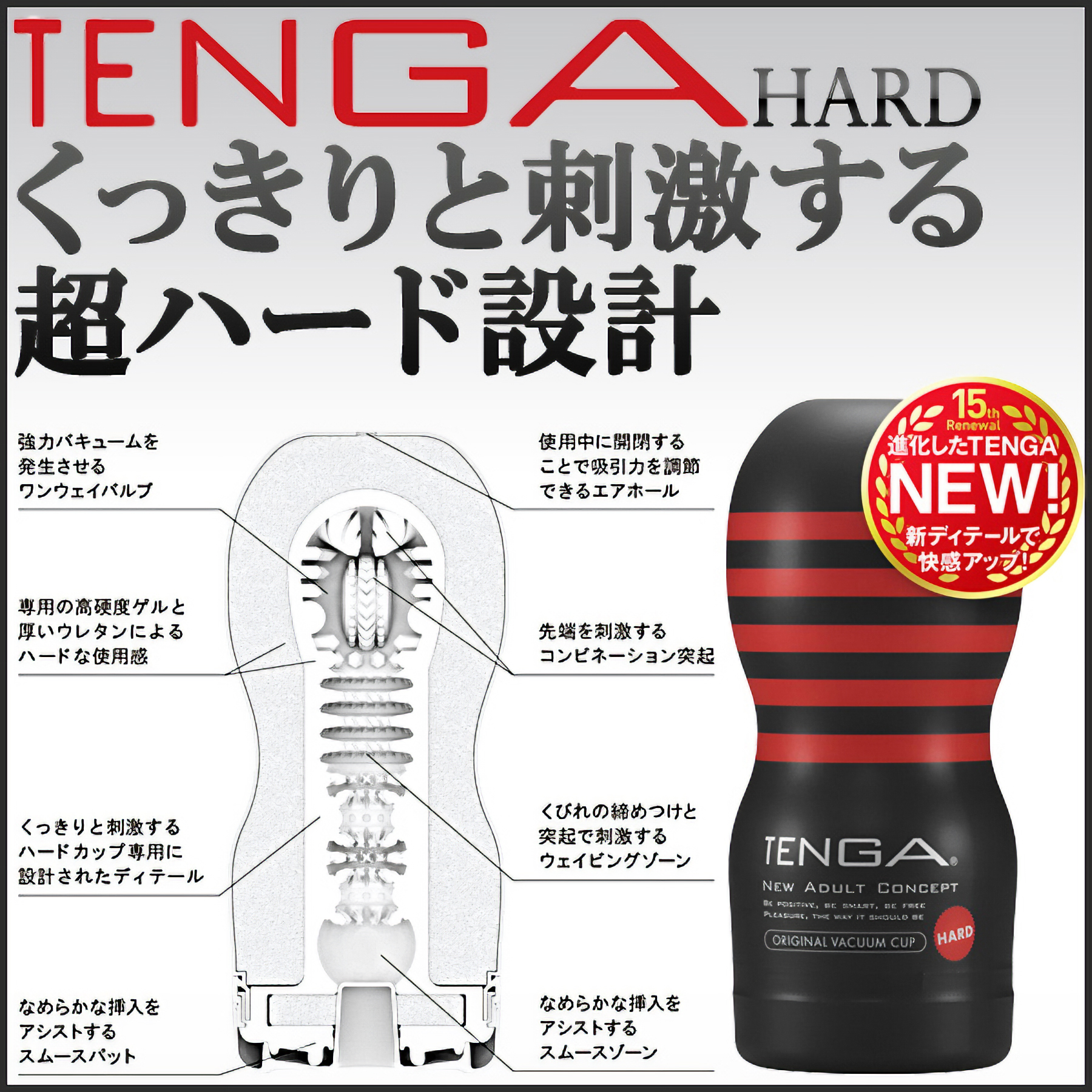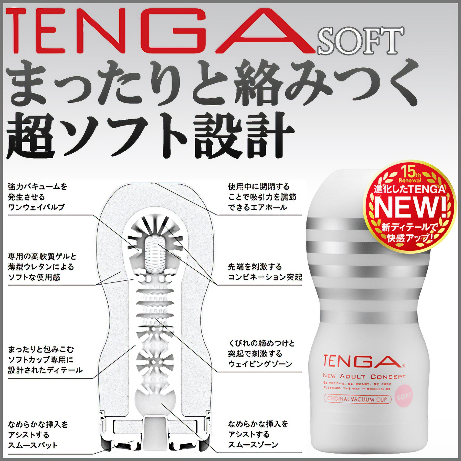 大人気オナカップが15周年を記念してリニューアル!新しくなったTENGAカップを堪能しよう!※【セット内容】オリジナルバキュームカップ スタンダード(r06634)、ソフト(r06635)、ハード(r06636)